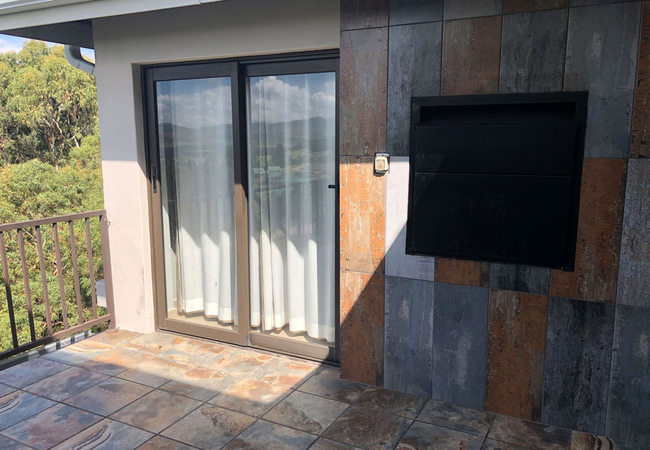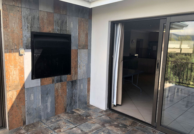 An open plan living area of lounge, dining room and conversation nook, is spacious and beautifully furnished. A fire place, essential for Clarens winters and cold evenings is situated in this area. Leading out from two sliding doors, an outdoor patio complete with outdoor furniture and a built in braai, lends itself to unending views over Clarens, the surrounding Rooiberg, and the distant Maluti Mountains of Lesotho. There is also full complement of DSTV channels provided together with a large flat screen TV for all the guests to enjoy.