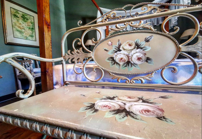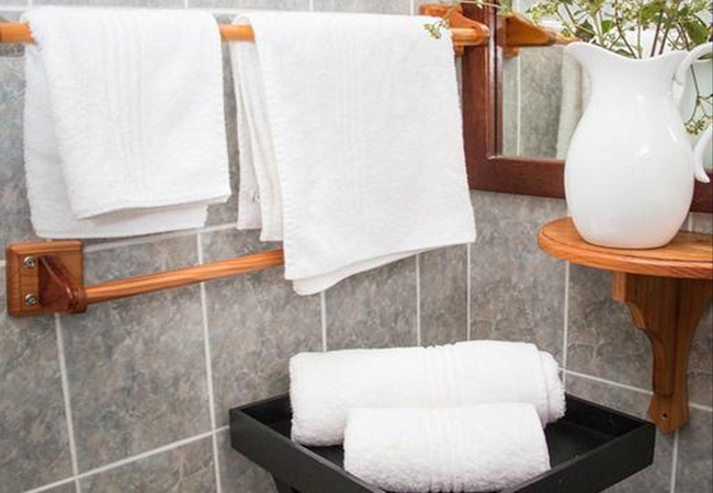 The Honeymoon Suite has a four poster Queen-size bed and en-suite bathroom with a free standing Victorian cast iron bath and double walk in shower. There is a seating area, tea / coffee making facility, heater and fan. A complimentary bottle of bubbly is included for this room.