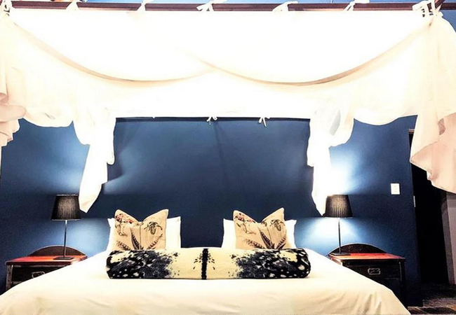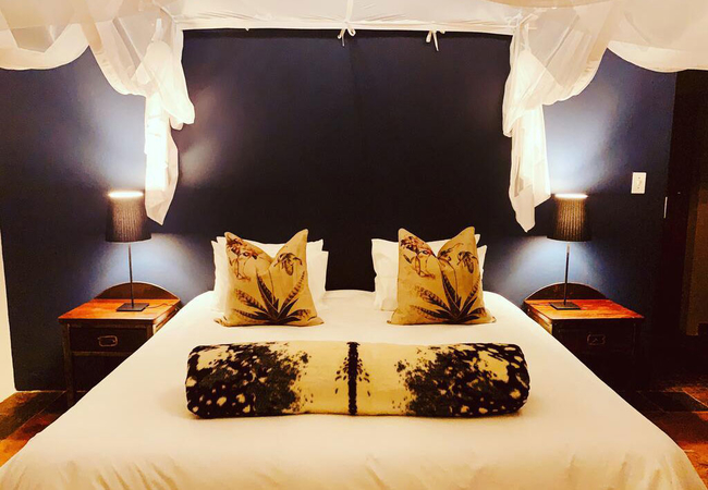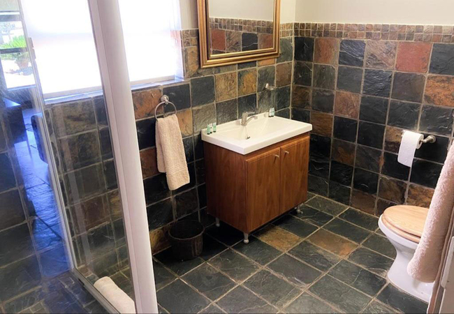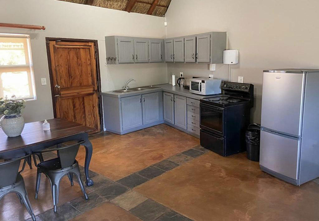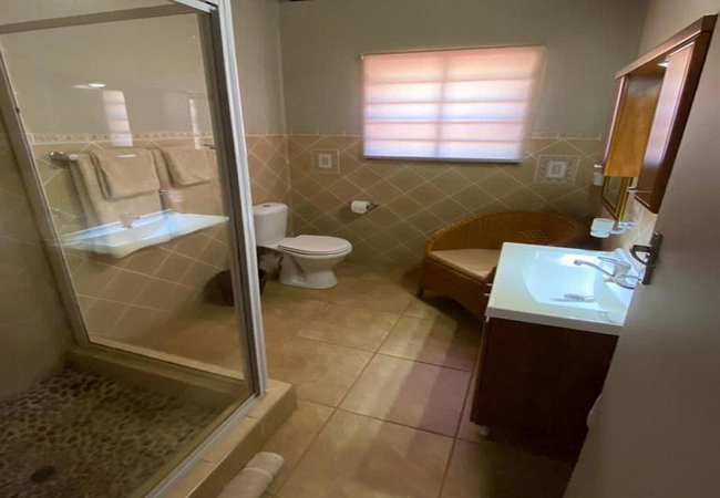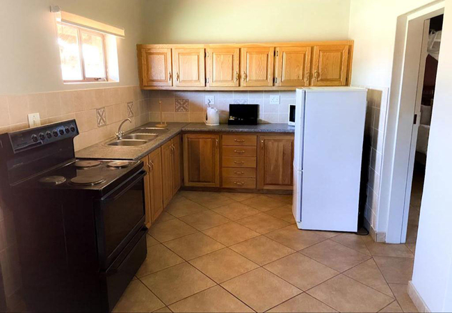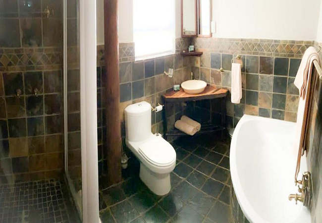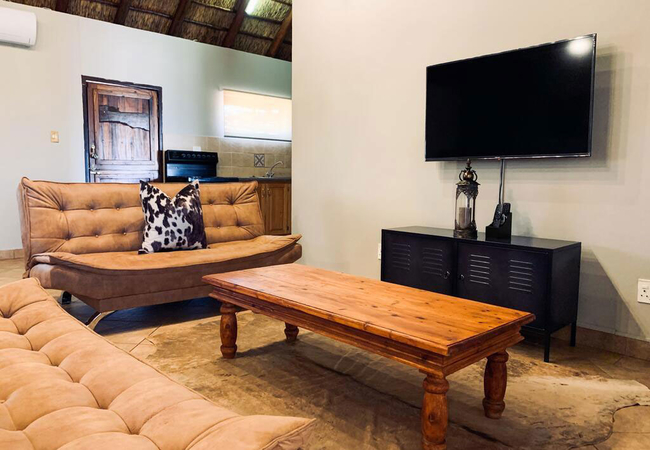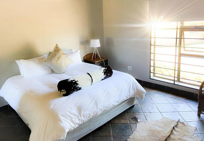 This air-conditioned Self-Catering Units has two bedrooms and can accommodate up to four guests at a time. Each room has a King-size bed and an en-suite bathroom with a shower, toilet and basin. The kitchen is equipped with a stove / oven, a fridge-freezer, microwave, coffee / tea making facilities, crockery and cutlery. The lounge has comfortable seating as well as a TV with satellite channels. Guests also have access to complimentary Wi-Fi. There are also lovely braai facilities where guests can enjoy preparing a meal together.