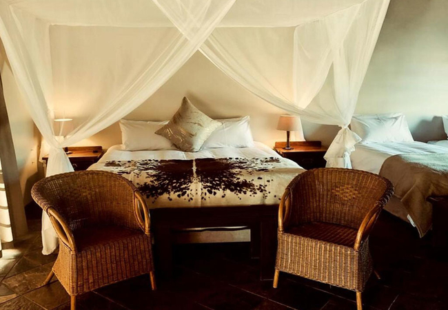 The air-conditioned Luxury Rooms have a King-size bed and an en-suite bathroom with a shower, toilet and basin. The rooms have a TV with satellite channels, complimentary Wi-Fi, coffee / tea making facilities and a minibar. Guests will also have a view of a feeding spot where the animals visit during the day.