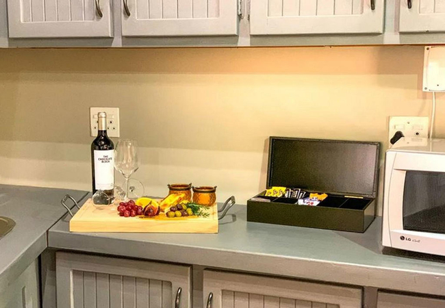 This air-conditioned Self-Catering Unit has one bedroom and can accommodate two guests at a time. The bedroom has a King-size bed and an en-suite bathroom with a shower, toilet and basin. The kitchen is equipped with a stove / oven, a fridge-freezer, microwave, coffee / tea making facilities, crockery and cutlery. The lounge has comfortable seating as well as a TV with satellite channels. Guests also have access to complimentary Wi-Fi. There are also lovely braai facilities where guests can enjoy preparing a meal together.