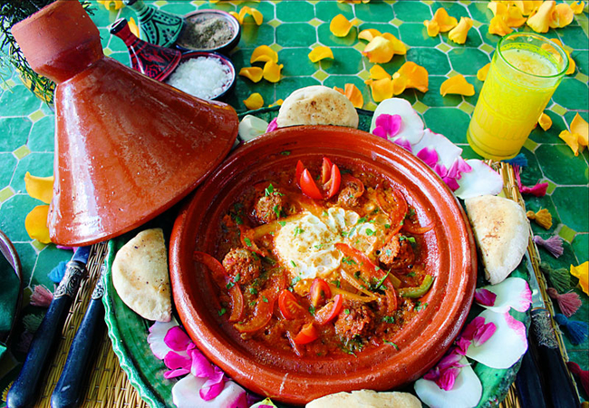 Unusual Moroccan tagine and French omelette breakfasts are served daily from 09h00 (or earlier on request).