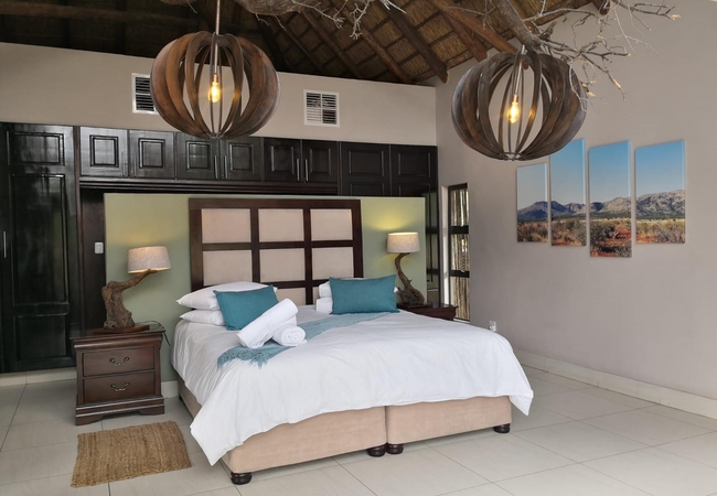 The 8-Sleeper Lodge offers three double suites furnished with a king-sized bed and one family suite furnished with a King-size bed and two single beds and seating area. There is a spacious and modern en-suite bathroom including private courtyard with additional exterior shower under the African sky.
