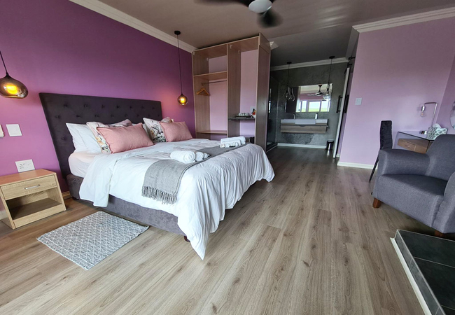This room has a Queen-size bed and offers sunrise views, with double doors leading outside. The en-suite bathroom has a rain shower, double vanity and a separate toilet. All the rooms have free Wi-Fi, tea / coffee facilities, ultra-silent ceiling fan, USB power point, dressing table with hairdryer, a seating area and fireplace.