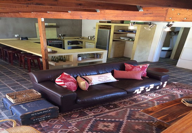 The living area is open plan and consists of a fully equipped kitchen that has fridge, stove, microwave, washing machine, dishwasher, kettle, toaster, crockery, cutlery and cookware. The lounge has comfortable seating and the dining room has a built in braai and plenty of space for its guests to enjoy a meal together.