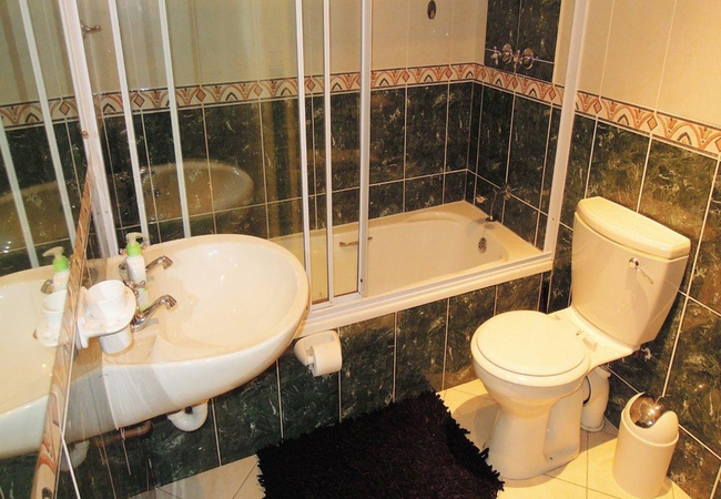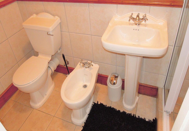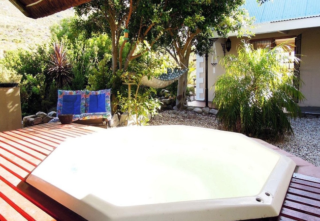 Apart from the fully equipped kitchen, living area with wood fireplace and beautiful views, you'll also find three well appointed bedrooms, each with their own separate entrance from the front porch. Bedroom 1: Double bed with crisp white linen, firm mattress, quality bedding and electric blanket. This room shares an en suite bathroom (bath and shower) with Room 3. Bedroom 2: Two single beds with crisp white linen, firm mattresses, quality bedding and electric blankets. Shares an en suite bathroom (bath and shower) with Room 2. Bedroom 3: Furnished with a Queen bed with crisp white linen, firm mattress, quality bedding, electric blanket and decorative fireplace. Private en-suite bathroom (shower, toilet and bidet). Other Facilities: • All kitchen utensils • Microwave • Oven • Washing machine • Flat screen TV with ‘Family' DStv package • Cold water Jacuzzi at outside braai area. What to bring along: • Food • Clothing (Betty's Bay can get pretty cold, so bring something warm) • Swimming towels (bath towels are supplied, but not swimming towels) • Firewood • Blitz • Matches