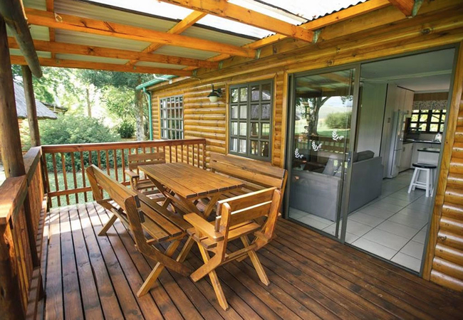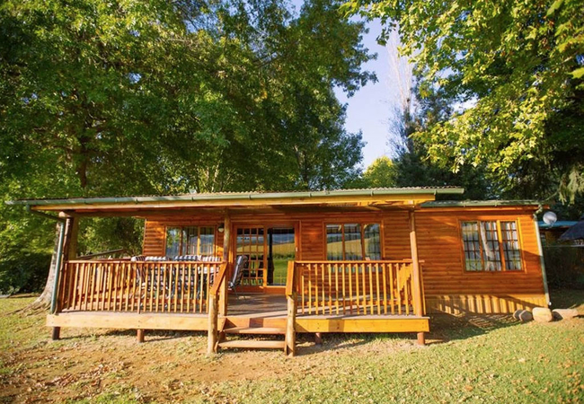 The two log cabins offer family friendly self-catering accommodation. The log cabins have three bedrooms each and one bathroom and an open plan living space. The covered veranda offers lovely views to the mountains. Units are strictly non smoking and guests need to bring their own towels. The units are serviced once a day and have DSTV (limited channels).