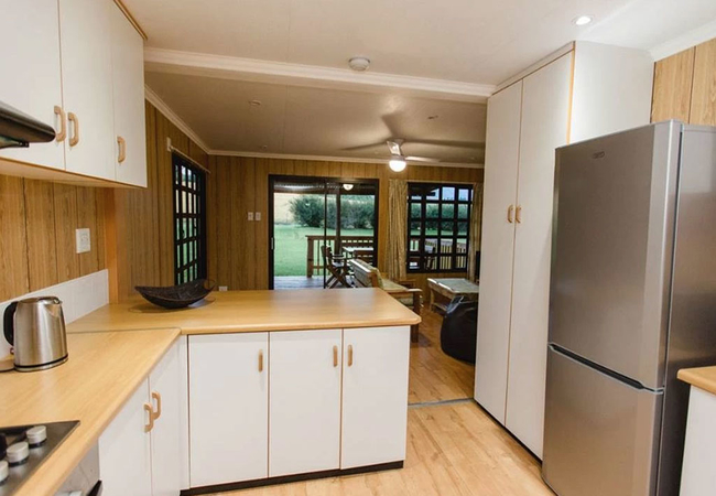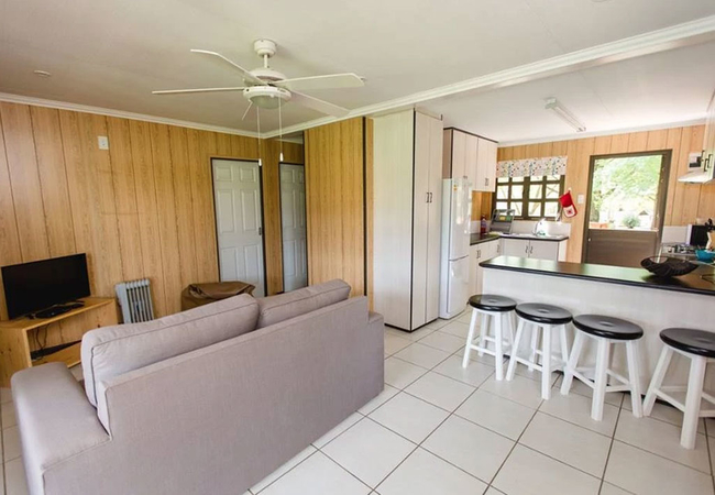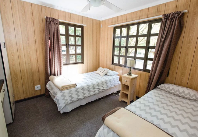 Guests can rent one of two log cabins. The log cabins have three bedrooms each and one bathroom and an open plan living space. The covered veranda offers lovely views to the mountains. Units are strictly non smoking and guests need to bring their own towels. The units are serviced once a day and have DSTV (limited channels).