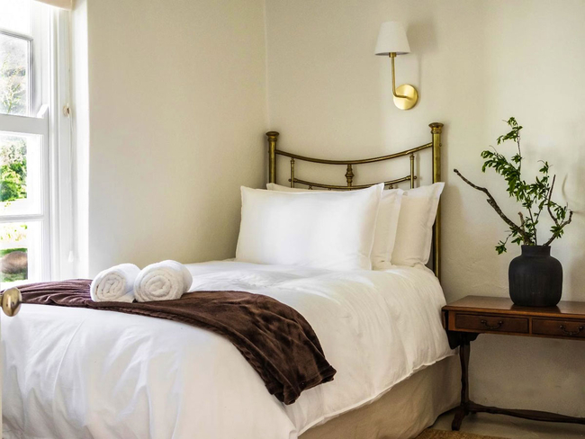 The Hamlet Mountain View Cottage is situated closest to the farm field, offering glorious views of the mountains, hills, and cows in the pasture below in Swellendam. The cottage is ideal for a family or group of 6. The cottage features 3 bedrooms and a bathroom fitted with a shower, bath, toilet, and basin. Two of the bedrooms are each furnished with a double bed, while the remaining bedroom has 2 single beds. The kitchen is fully equipped for self-catering, including a gas stove, oven, fridge-freezer, microwave, cutlery, and crockery. The living area offers a cosy fireplace, comfortable seating, and a bookcase. There is also a wood-fired hot tub available for guests to enjoy.