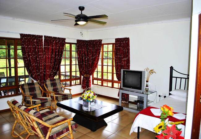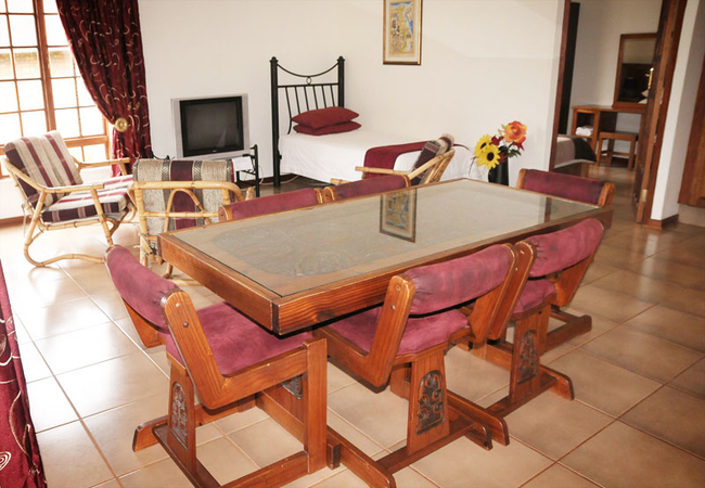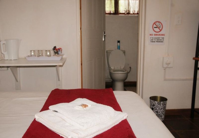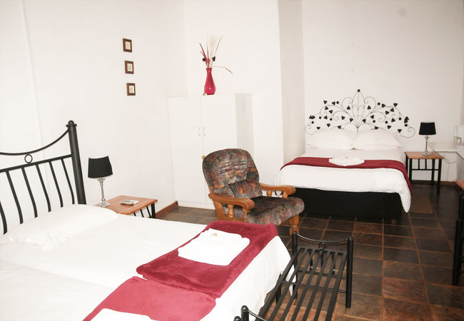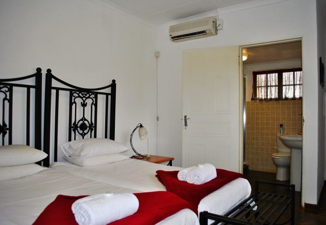 The guest house has six en-suite bed rooms with TV (four DStv channels), private entrances, tea / coffee facilities and air-conditioning. The rooms are furnished with a King-size bed or twin beds.