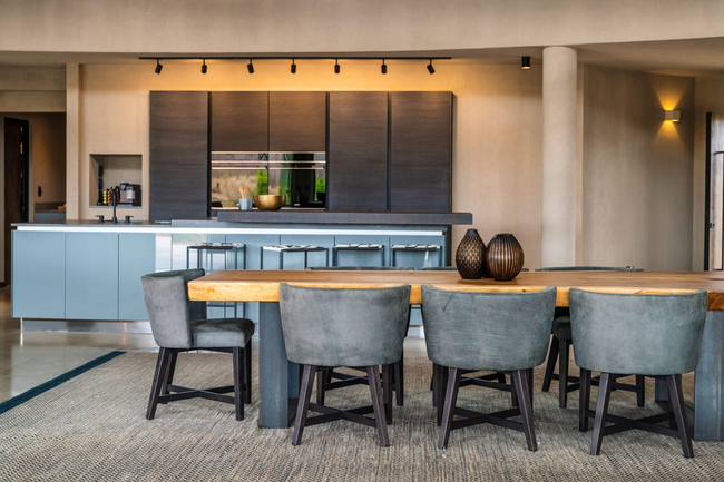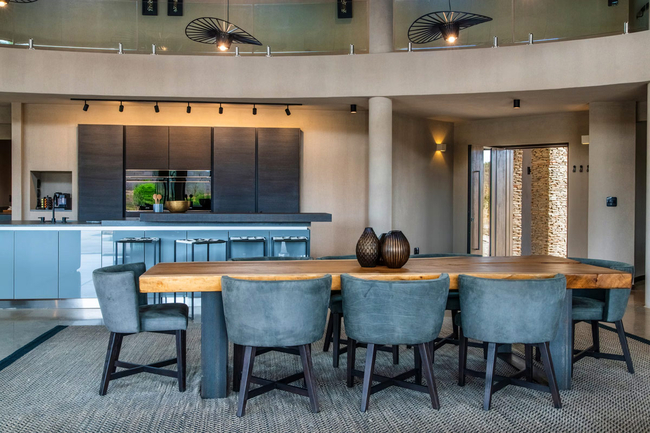 Situated along the serene banks of the iconic Sabie River, Mpfuvu Lodge at Elephant Point offers breathtaking views of the unspoiled Kruger National Park. This fully air-conditioned villa provides an ideal retreat for those seeking tranquility, featuring an expansive wooden deck complete with a heated swimming pool that invites relaxation. Designed to comfortably host up to eight guests, the villa comprises four air-conditioned bedrooms, each with its own en-suite bathroom. Two of the bedrooms are appointed with king-size beds, while the remaining two feature twin beds. The en-suite bathrooms are elegantly fitted with a shower, bathtub, washbasin, and toilet. Guests are provided with high-quality linen, plush bath towels, and luxury soaps to enhance their stay. The open-plan living area exudes sophistication, showcasing a modern kitchen equipped with a gas stove, electric oven, microwave, fridge-freezer, coffee station, and a full array of cutlery and crockery. A central island with seating makes for a perfect spot to enjoy casual conversations, while the adjacent dining table invites guests to gather for shared meals. The lounge area is furnished with comfortable seating and a flat-screen TV, and complimentary Wi-Fi is accessible throughout the villa. From the living area, doors lead to a covered patio featuring an outdoor dining table, a cozy lounge corner, and built-in braai facilities. Beyond the patio lies a sparkling swimming pool with sun loungers, complemented by a sunken boma ideal for evenings spent around a fire. For added indulgence, a rooftop hot tub offers panoramic views and a touch of luxury.
