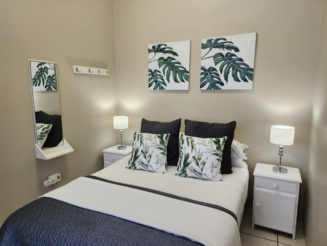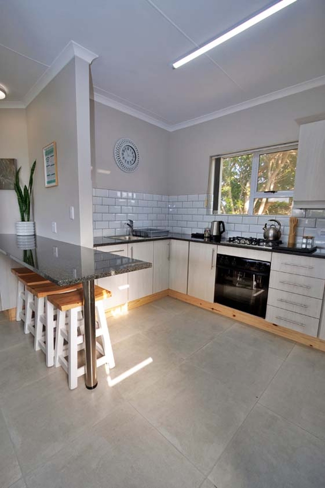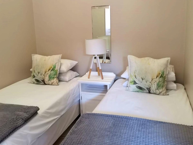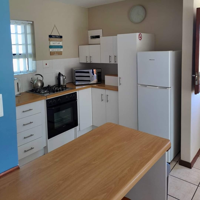 The upstairs Kingfisher apartment is perfect for larger families looking for a comfortable beach stay. With open plan living area, shaded braai area (BBQ), kitchen and modern, comfortable bedrooms, family bathroom with shower and separate toilet; the Kingfisher is the perfect place to bring the family together. Sleeps up to six (one double room and one room with four single beds) and just 10 minutes' walk from the beautiful Stilbaai blue flag beach and estuary, harbour, whale watching point, walks in nature and much much more. And of course, WiFi access and flat screen TV for when you need a break from the fun, sunshine and natural beauty of Stilbaai. Please note, our Kingfisher apartment is only accessible via stairs.