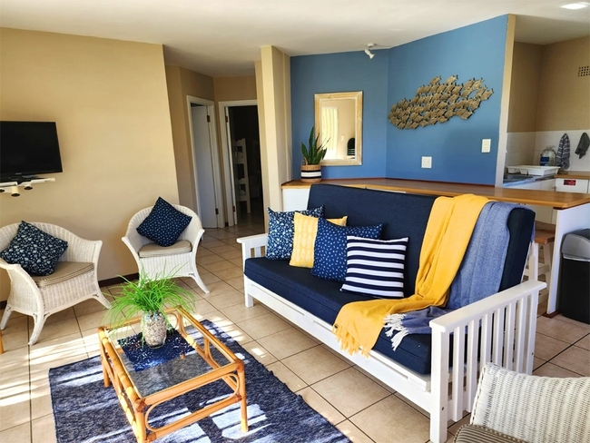 Our ground floor, cozy, Weaver apartment is perfect for families, couples or friends looking for a comfortable beach stay. With open plan living, outdoor braai area (BBQ), bright, modern, comfortable bedrooms, fully supplied self-catering kitchenette and shower room; the Weaver is the perfect place to bring families or friends together or for couples looking for a romantic break. Sleeps up to four (one room with double bed and one room with two single beds). Just 10 minutes' walk from the beautiful Stilbaai blue flag beach and estuary, harbour, whale watching point, walks in nature and much much more. And of course, WiFi access and flat screen TV for when you need a break from the fun, sunshine and natural beauty of Stilbaai.