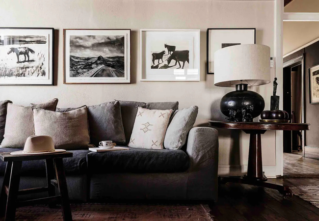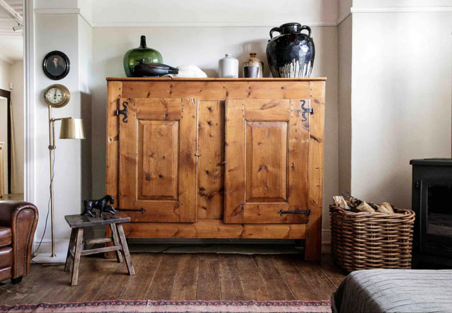 The home has a well-equipped kitchen with Smeg appliances and an original Dover stove. Enjoy dining on the raw wood dining table in the kitchen. The lounge area has a fireplace for cosy winter nights and there is a library to curl up with a good book.