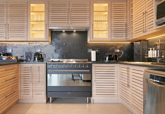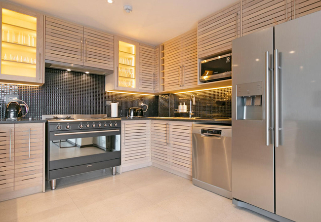 Murex apartment Two is a self catering holiday apartment in Three Anchor Bay with four luxuriously appointed bedrooms, each with a lavish en-suite bathroom. The first and second bedroom are furnished with a King-size bed and have an en-suite bathroom fitted with a bath, shower, toilet and basin. The third and fourth room are furnished with twin beds and have an en-suite bathroom fitted with a shower, toilet and basin. The fourth en-suite also has a bath. Linen and towels are provided and the rooms boast a hairdryer, safe, heated towel rails and Charlotte Rhys Amenities. The apartment is equipped with Wi-Fi, TVs DStv, and air conditioning. The living, dining and kitchen areas are open-plan and lead onto a balcony revealing breath-taking ocean views.