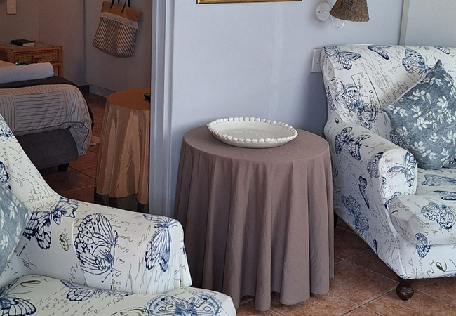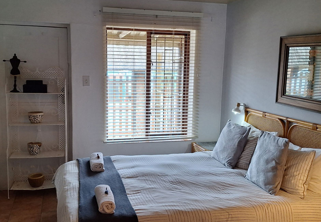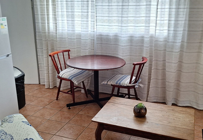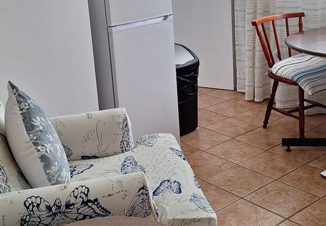 The flatlet has a small living area and kitchenette as well as a dining and lounge area. The en-suite bedroom has its own separate entrance but no kitchen facilities except for a bar fridge and tea / coffee making facilities.