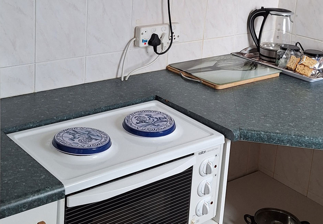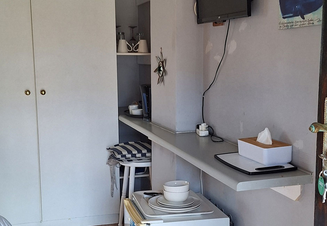 The Self Catering Flatlet has a bedroom with a Queen-size bed and en-suite bathroom with a shower. There is a kitchenette which is fully equipped as well as a lounge and dining area. The flatlet has a TV with selected satellite channels.