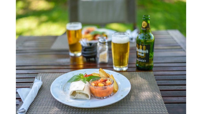 The Family Suite is a spacious two-bedroom family chalet, with a view onto the Lodge's waterhole offering accommodation for up to 4 persons. With separate entrances from the private deck and each with its own access to the joint bathroom. Amenities include Wi-Fi, Air conditioning, desk, safe, ceiling fan, electric blanket, non-feather pillow, garden view. Bathroom amenities, hairdryer, separate tub and shower, coffee / tea facilities and a patio.