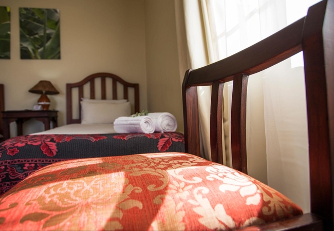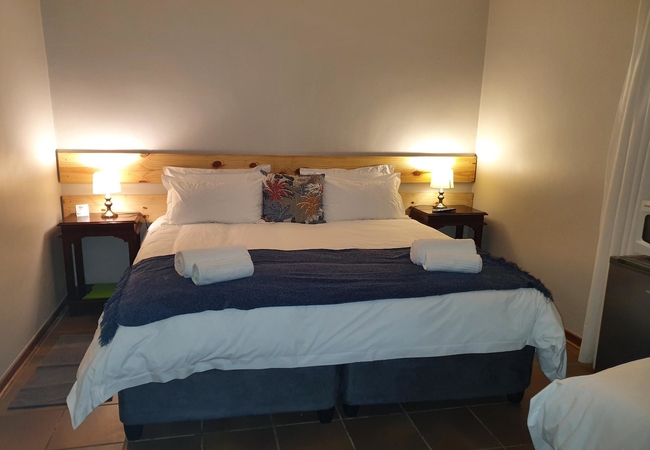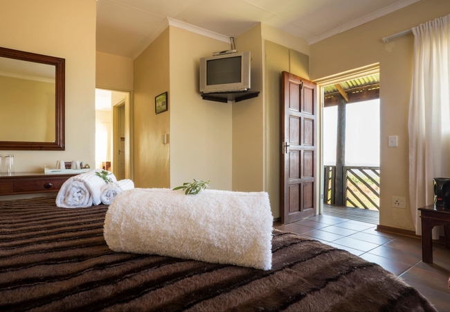Rooms are 3-star graded, en-suite with DStv, a ceiling fan, small safe and a coffee and tea station. All rooms overlook the escarpment with beautiful vistas to the east. Except one that has a double bed, all rooms have twin beds. Two of the units have interlinking doors giving easy access to children.