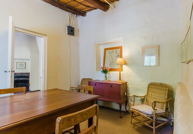 Vineyard Cottage is our spacious self-catering cottage that can comfortably sleeps 6. It has three double bedrooms, two bathrooms (one with shower), sitting room with fireplace, dining room and a kitchen. The stoep (patio) where you can peacefully enjoy a glass of wine overlooks the horse paddock with BBQ (braai) facilities on the lawn.