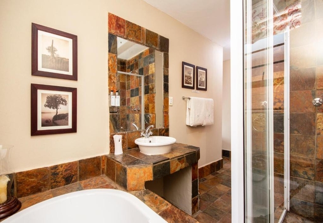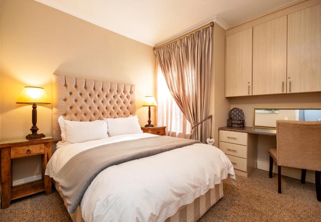 The Queen Room is furnished with a Queen-size bed and the en-suite bathroom is equipped with a shower. Our spacious rooms are decorated with beautiful wooden furniture and equipped with flat-screen TVs and DSTV. Other facilities in the rooms include Room Facilities free Wi-Fi, tea and coffee making facilities, air conditioning and a hair dryer.