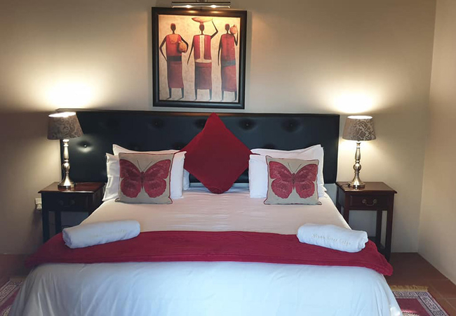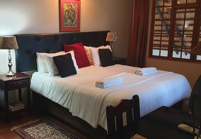 The 12 suites are arranged in a series of buildings that are single storey and have a small front area within our lush indigenous gardens. We offer units with either a double bed, or two twin beds. These units have en-suites which include a shower. Each suite has a desk, tea / coffee facilities, DStv, fans, air-conditioning and a wall safe.