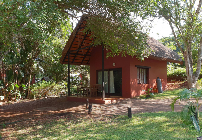 The One Bedroom Chalet has a single bedroom furnished with a double bed. The chalet has a TV, fan, air- conditioning, fridge, microwave, kettle, toaster, cutlery, crockery and an outdoor braai. These units have en-suites which include a shower. Each chalet has a desk, tea / coffee facilities, DStv, fans, air-conditioning and a wall safe. Ndumu River Lodge boasts a wheelchair friendly unit with two twin beds en-suite shower. It has air-conditioning, ceiling fan.