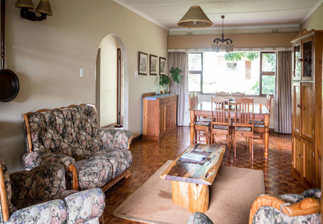 Nerrily Holiday Cottage in Oribi Gorge is spacious and sleeps up to seven guests in three bedrooms. The first room is furnished with a double bed. The second room is furnished with two single beds and the third room is furnished with two single beds and a day bed. The bathroom is fitted with a bath, shower, toilet and basin.