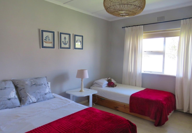 Nest Egg Holiday Home has five bedrooms. The first bedroom is furnished with a Queen-size bed and has an en-suite bathroom fitted with a shower. The second room is furnished with two single beds and the third room has a Queen-size bed and a single bed. These two rooms share a bathroom fitted with a bath and a separate toilet. The fourth bedroom and fifth bedrooms are furnished with Queen-size beds and share a bathroom fitted with a shower. Ideal for families, this spacious haven boasts ample sunlight through large windows and high ceilings, complemented by vinyl flooring. The expansive braai area beckons for unforgettable gatherings. Enjoy mountain and garden views from the balcony of this 5-bedroom home, featuring a terrace, sea views, and a fully equipped kitchen. The home also has a cosy fireplace and comfortable living space. An inverter is installed for TV, Wi-Fi, and one light in lounge. Parking is available on site.