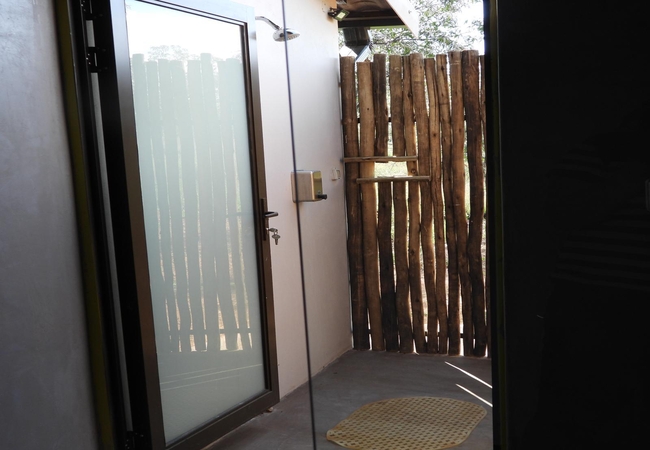The first room is furnished with a King-size bed and the second room is furnished with two single beds. The en-suite bathroom is fitted with a shower, toilet and basin. There is a TV with DStv as well as a kitchenette. The tent has a private patio and a built in braai.