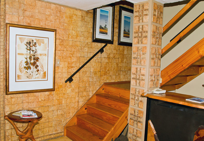 First Floor Queen room. En-suite bathroom with shower, basin and WC (enclosed). Small bar fridge, coffee/tea tray, flat screen TV with DSTV hotel bouquet and internet access.