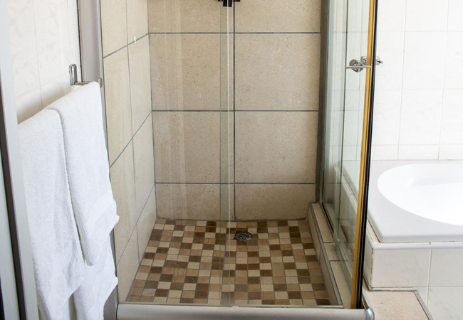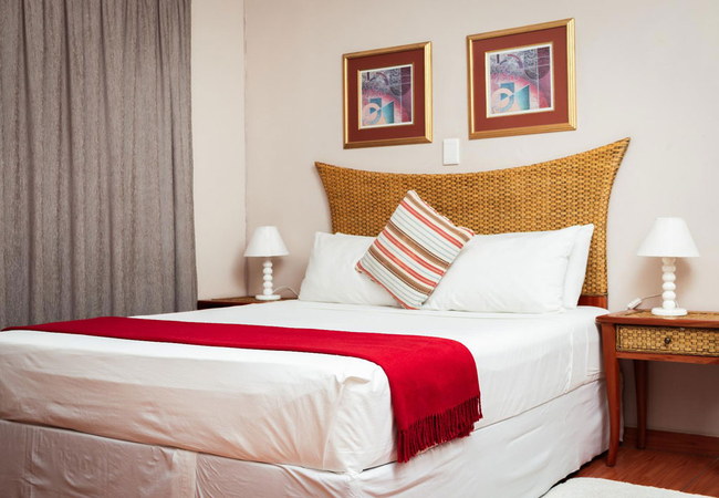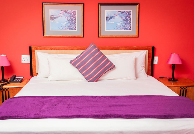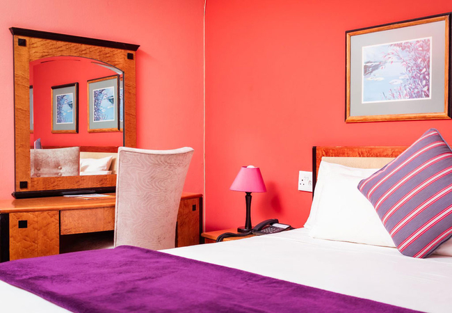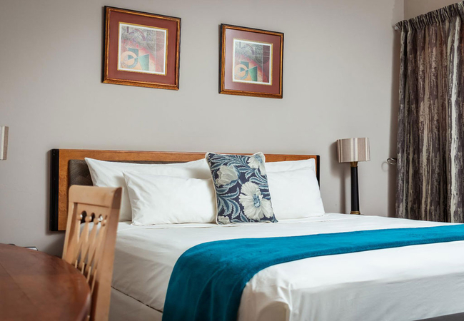 The Superior Room is furnished with a Queen-size bed. The en-suite bathroom is fitted with a shower, toilet and basin. Each room contains free Wi-Fi access, a work desk, a bar fridge, a lockable safe, a TV with selected DStv, a dial-direct telephone, and other amenities.