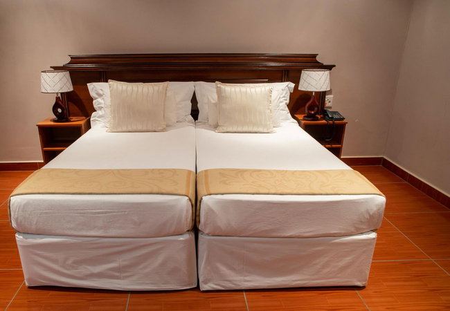 Standard Twin Rooms are furnished with twin beds. The en-suite bathroom is fitted with a shower, toilet and basin. Each room contains free Wi-Fi access, a work desk, a bar fridge, a lockable safe, a TV with selected DStv, a dial-direct telephone, and other amenities.