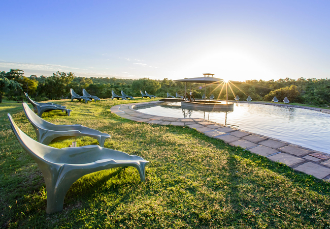 There is a large swimming pool area overlooking a dam where hippo and other wildlife visit. The guest lounge is a great place to unwind and outside there is a large boma for evening braais.