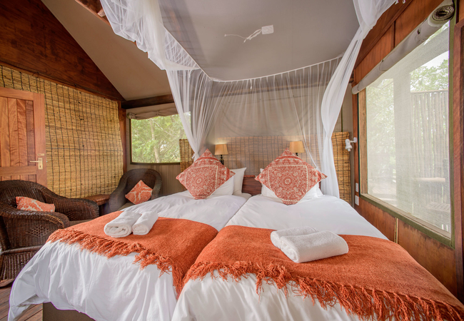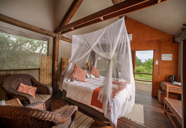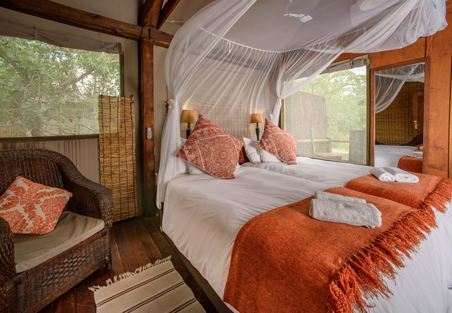 Nkambeni Safari Camp is a comfortable game lodge with 150 beautifully appointed, air-conditioned timber and canvas tented suites.