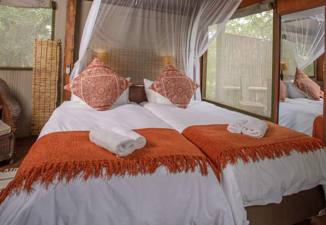 Nkambeni Safari Camp provides accommodation of up to 150 beautifully appointed, air-conditioned timber and canvas tented suites. In each room is two extra length beds as well as an en-suite bathroom with an indoor and outdoor shower. There are tea / coffee making facilities in each room.