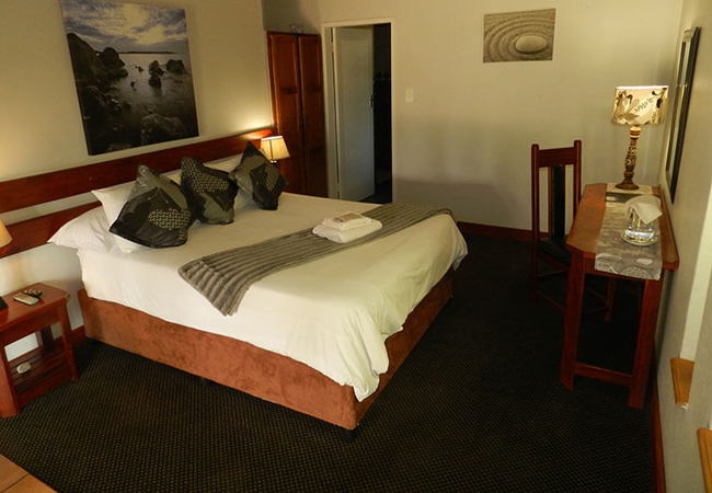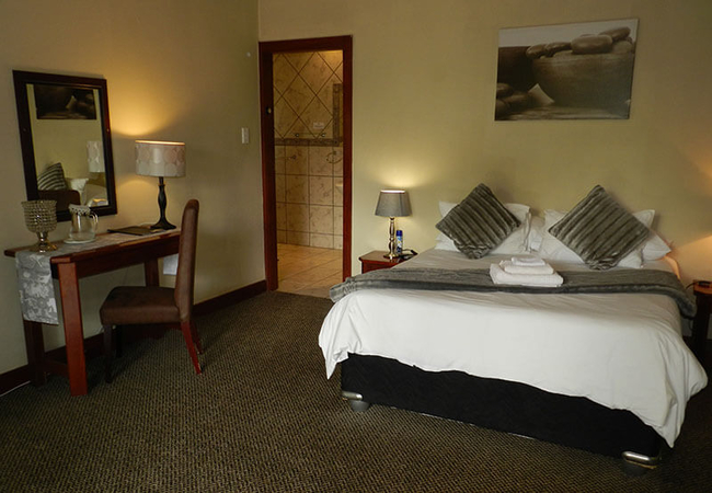 These rooms are furnished with double beds (if you require twin beds, please request this after confirming your booking). The en-suite bathroom is equipped with a shower. Tastefully decorated and each with private entrances for our guests' convenience. For your comfort all of our rooms have air conditioning and heating and for cool winter evenings additional heating and blankets are provided. DSTV and hospitality trays are available in all rooms. The safety and security of our guests is of prime importance to us at the Lodge. We take every precaution necessary to make you feel safe and at ease during you stay with us.