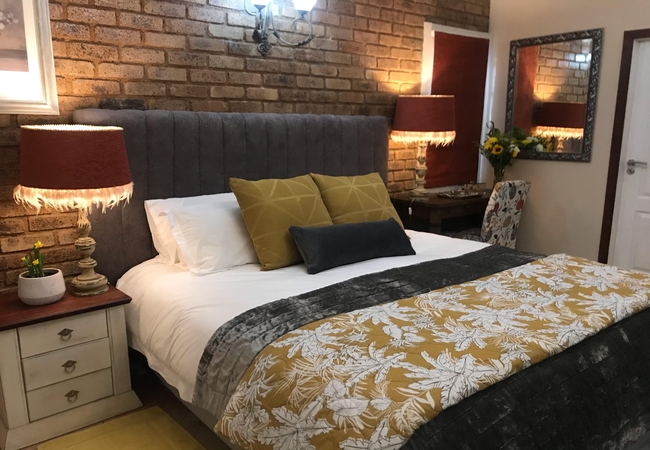 This luxury room is furnished with a double bed. The en-suite bathroom is fitted with a shower, toilet and basin. The room has a separate entrance, a TV with DStv, Wi-Fi and tea / coffee making facilities.