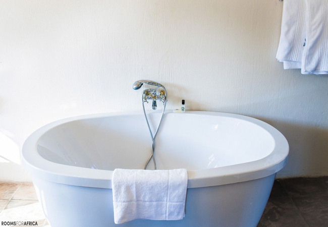 The first-floor room is furnished with a king bed and has an en-suite bathroom fitted with a bath, shower, toilet and basin. Toiletries, linen, towels, as well as heating and a fan, is available, and offer a lounge with a cosy fireplace, opening onto a balcony.