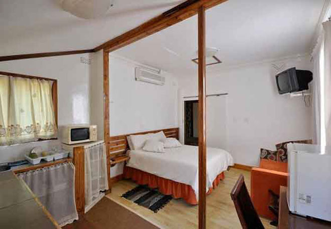 Self Catering Standard Suite is a bright and cosy suite is ideal for up to four guests for a short stay. Furnished with a Queen bed or two single beds. Equipped with a fridge and stove the suite has a private bathroom, TV, aircon and internet.