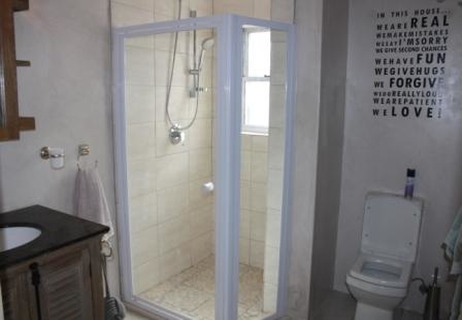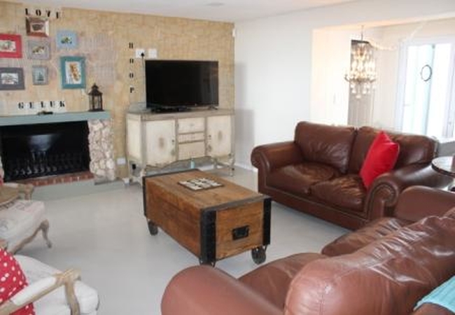 The large house offers three bedrooms and sleeps a maximum of six persons. Each of the bedrooms has a double bed. The main bedroom has an en-suite bathroom and the rest of the bedrooms share a family bathroom. Two of the bedrooms boast sea views as does the lounge area, where you can also curl up in front of the fireplace. The open plan kitchen is fully equipped for self catering. If you step outside through the glass doors onto the decked patio, you can relax on the loungers and catch a tan, have a braai or take a dip in the splash pool.