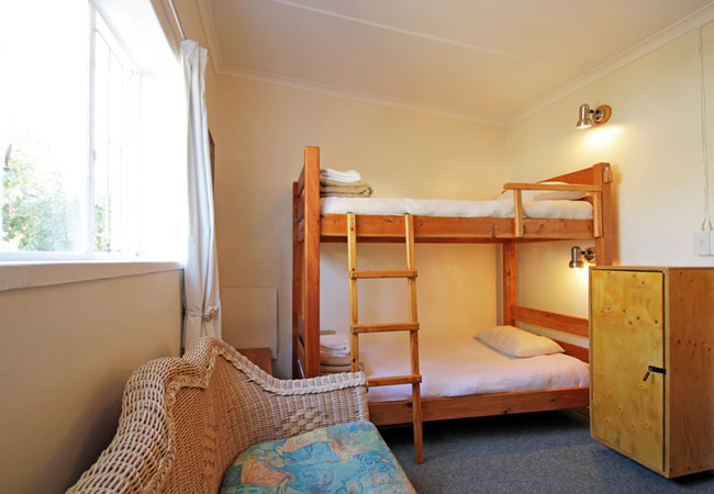 This practical and comfortable dormitory room is ideal for small groups and families, maximum of 6 guests. Ideal for a group or a family, the room has three bunk beds and an en-suite bathroom equipped with a shower, hand badsin and WC. Guests booking will occupy one of the beds. The room has tea and coffee facilities, a heater, warm blankets, Wi-Fi, and opens onto a patio and small garden.
