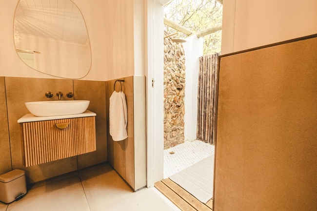 From the private patio, you can take in sweeping views of the mountains and pool while enjoying the warmth of a cosy fireplace. This elegant self-catering home offers comfort and privacy with its own entrance. Designed for the perfect getaway, this beautiful home boasts two generously sized bedrooms, each with a double bed and an en-suite bathroom equipped with a shower. Luxurious bed linen and towels are provided for your comfort. Relax in the inviting lounge, where the fireplace creates an intimate atmosphere, perfect for gatherings and quiet moments alike. The lounge features a flat-screen TV with streaming services, offering entertainment as you unwind. Stay connected with Wi-Fi, and enjoy meals together in the welcoming dining area. The fully equipped kitchen, complete with a refrigerator, is ready to inspire your culinary creativity. Step out onto the patio to embrace the stunning mountain and pool views, and enjoy the warmth and charm of the private entrance and inviting fireplace. This retreat promises an unforgettable stay filled with relaxation and cherished memories. Take a refreshing dip in the splash pool or spend your evenings gathered around the fire pit beneath the stars. Experience the outdoor shower and unwind in the freestanding bath for the ultimate relaxation. Explore the enchanting art garden, where creativity and nature converge to create a peaceful and inspiring environment.