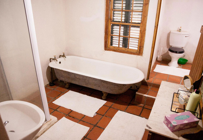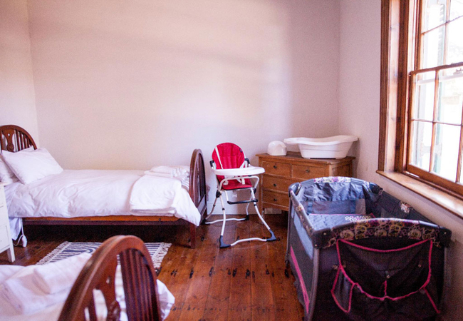 Oasis has three bedrooms. Two of the rooms are furnished with double beds, one also has a fireplace, and the third room is furnished with two single beds. The separate bathroom is fitted with a shower, bath, separate toilet and basin. A baby cot and high chair are available. The rustic open-plan kitchen is equipped with a gas stove and oven, fridge, tea and coffee facilities and indoor fireplace / braai. The lounge has comfortable seating and meals can be enjoyed at the dining table. The living room and dining area open onto a covered patio with an outdoor portable braai area and a fire pit. Secure parking is available.