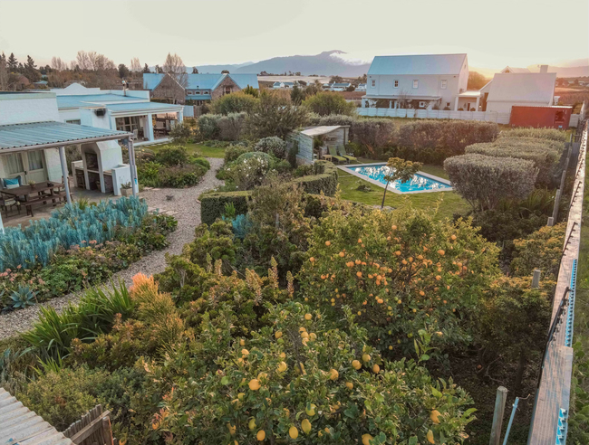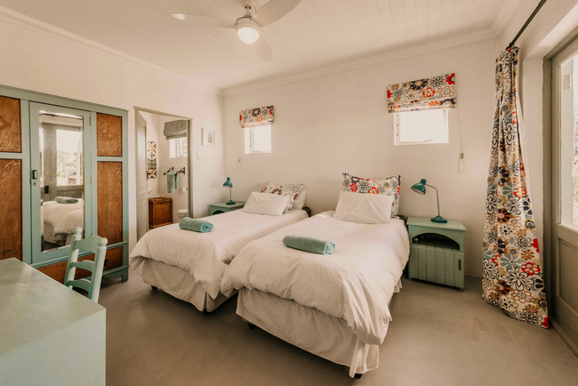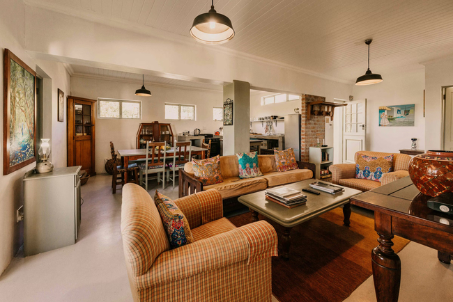 The country house is set in a large garden with expansive lawns and garden beds, and is located in a quiet cul-de-sac on the edge of Riebeek Kasteel village. There is a friendly pub a few hundred yards away, and the village square is a fifteen-minute walk through the picturesque streets.