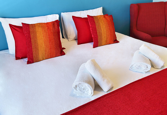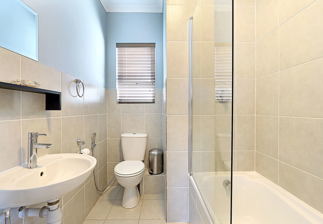 Ocean Breeze 59 is an Exclusive Use Holiday Apartment sleeping four guests in two bedrooms. The main bedroom is furnished with a King-size bed and the second room has two single beds (and a camp cot). Both rooms share a full bathroom. Bed linen and towels are provided. The living area is comprised of an open plan and fully-equipped kitchen and a lounge that open up onto a small balcony. The lounge is comfortably furnished and equipped with a TV and DStv. The kitchen is well equipped for self catering and meals can be enjoyed at the breakfast nook. Secure parking is provided at Ocean Breeze 59.