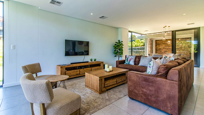 The kitchen is fully equipped and includes a dishwasher, washing machine and tumble dryer. There is a comfortable living area with a TV, DStv and a large dining table.
