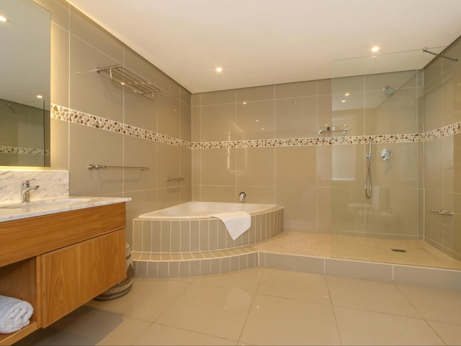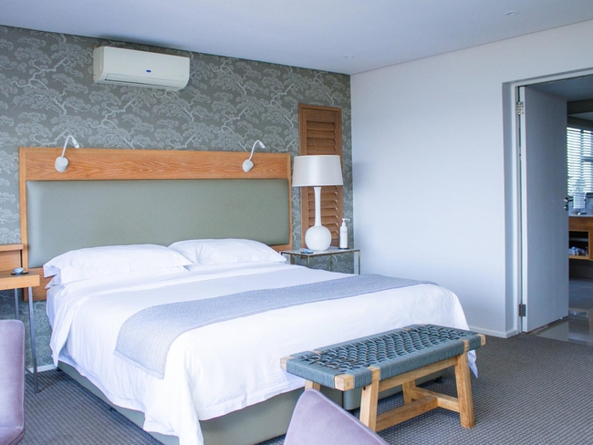 This elegant ocean-facing room, situated on the lower ground floor, features a private 6 sqm deck where you can relax and take in the view. Decorated in neutral tones, the light-filled bedroom offers an extra-length bed that can be arranged as either twin beds or an extra-large king. The spacious bathroom boasts stunning ocean views and includes a bathtub and shower combination, along with a hairdryer and premium amenities. Modern comforts such as air conditioning, Wi-Fi, a TV with satellite channels, a desk, a safe, and a minibar ensure a relaxing and convenient stay.