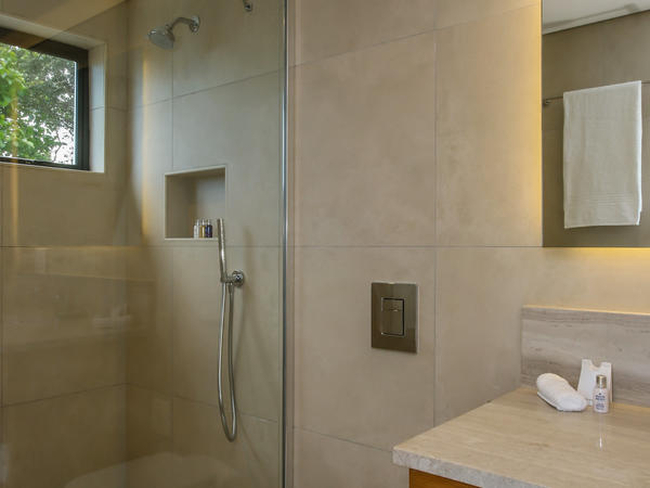 Luxury room, tucked away on the North-East side of the lower level of the three-tiered house with its own 25 sqm courtyard, from which to enjoy amazing sunrises, balmy evenings, garden and ocean views. A well-considered, very light and beautiful room. Each room has a large HD flat screen TV with satellite channels, a desk with multiple plug points, lap top safe,hairdryer, individual air conditioning, mini bar, reading lamps and tea / coffee making facilities. Bathroom amenities are luxurious, white linen is 100% cotton percale and our duvets and pillows anti allergenic.