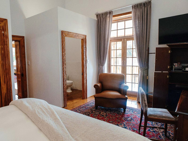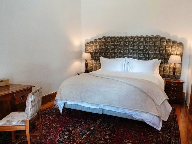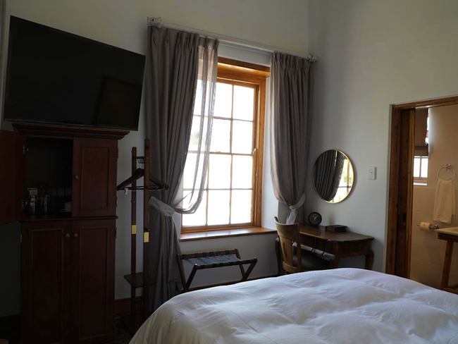 Volstruis Paleis features a comfortable double room located within the Manor House. The room includes a king-size bed that can be converted into twin beds, offering flexibility for guests. The ensuite bathroom is fitted with a shower, complimentary amenities, and a hairdryer. Modern conveniences such as free Wi-Fi, a television with DStv, and coffee and tea facilities ensure a pleasant stay. The room also includes a work desk and hypoallergenic pillows, and it is designated non-smoking for guest comfort.